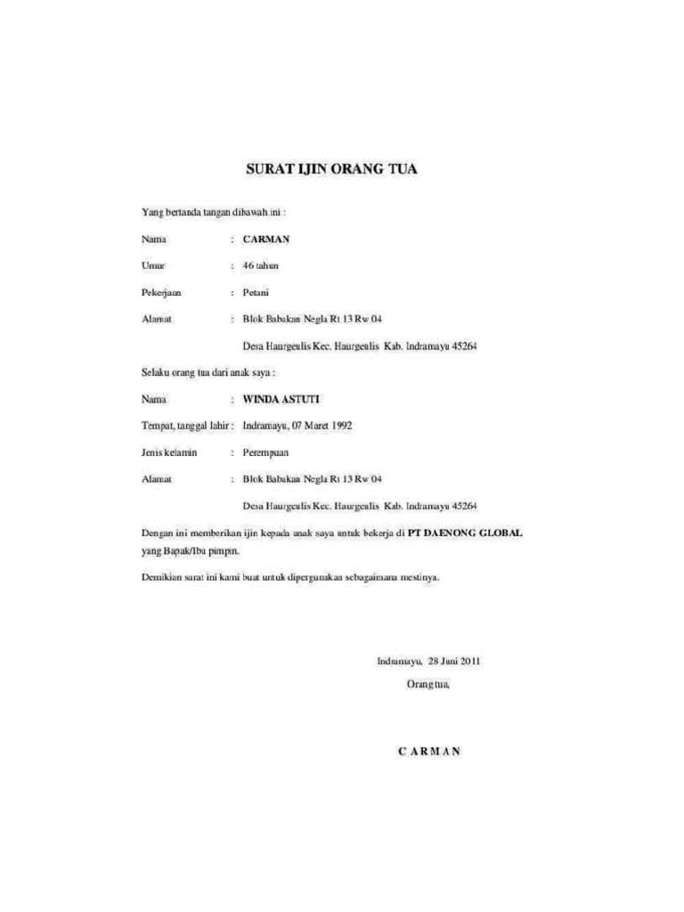 Mengisi formulir pendaftaran masuk seminari, ijin orang tua dan rekomendasi pastor paroki. Surat ijin orang tua docx : Kenapa demikian tidak lain dan tidak bukan karena surat memiliki bukti fisik yang bisa digunakan sebagai bukti di kemudian hari. Orang tua dari mahasiswa fakultas pertanian, univesitas brawijaya sebagai berikut : Surat izin orang tua untuk bekerja.doc.